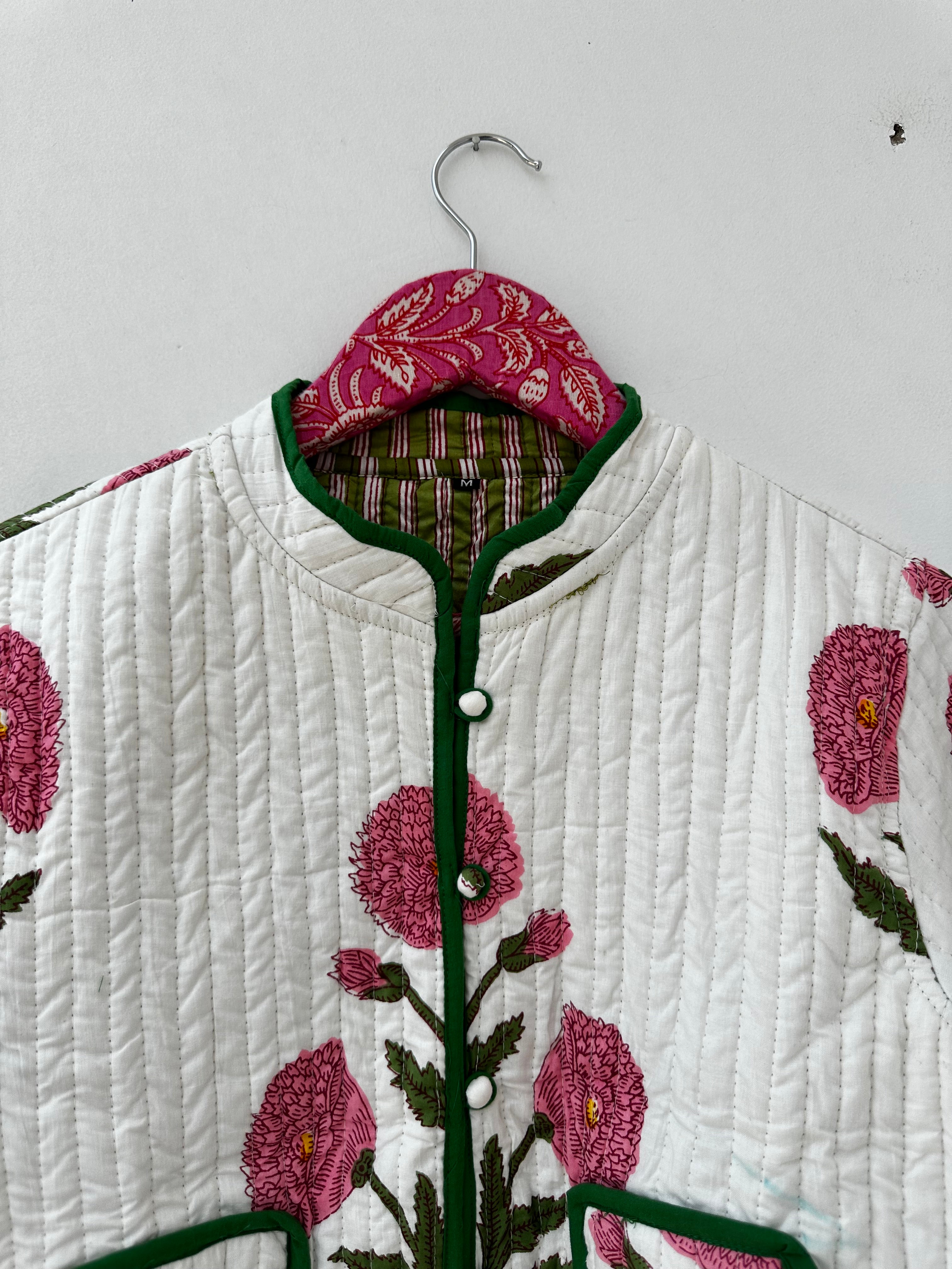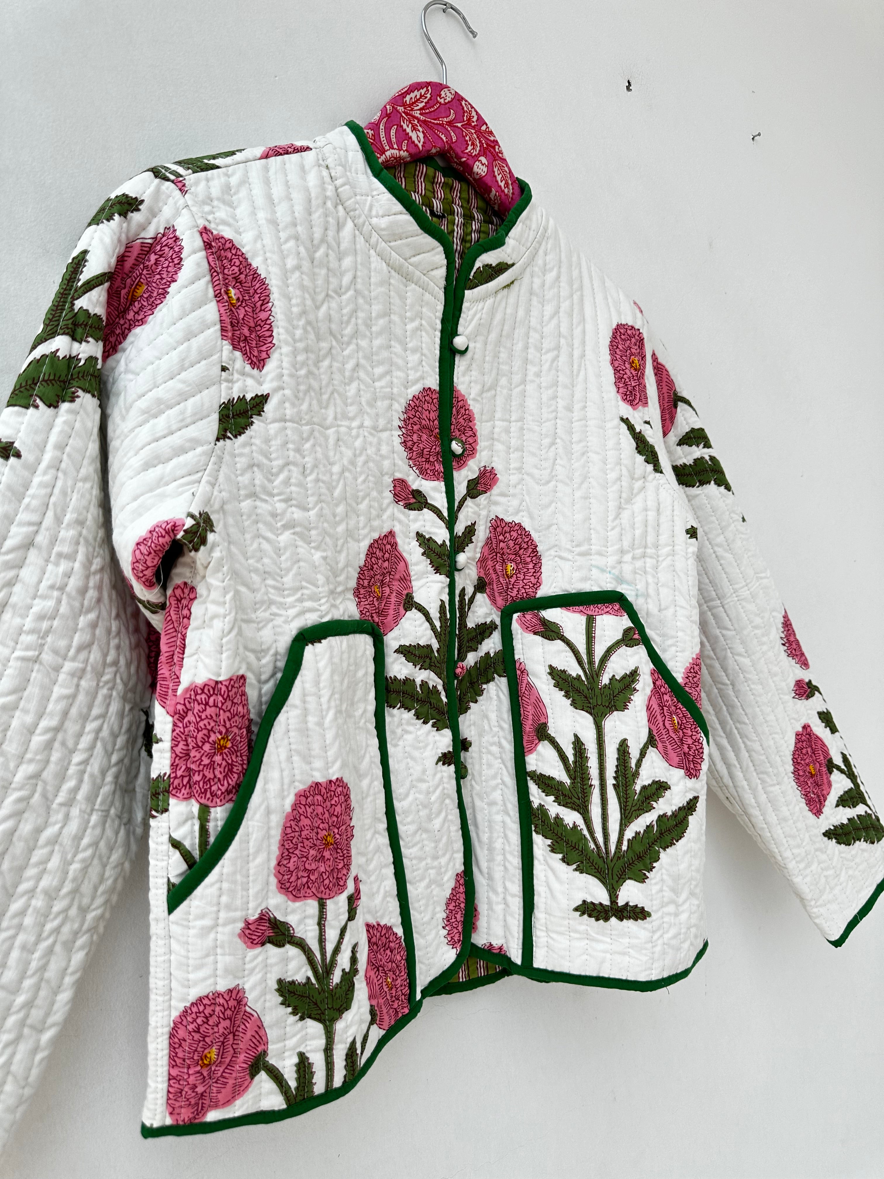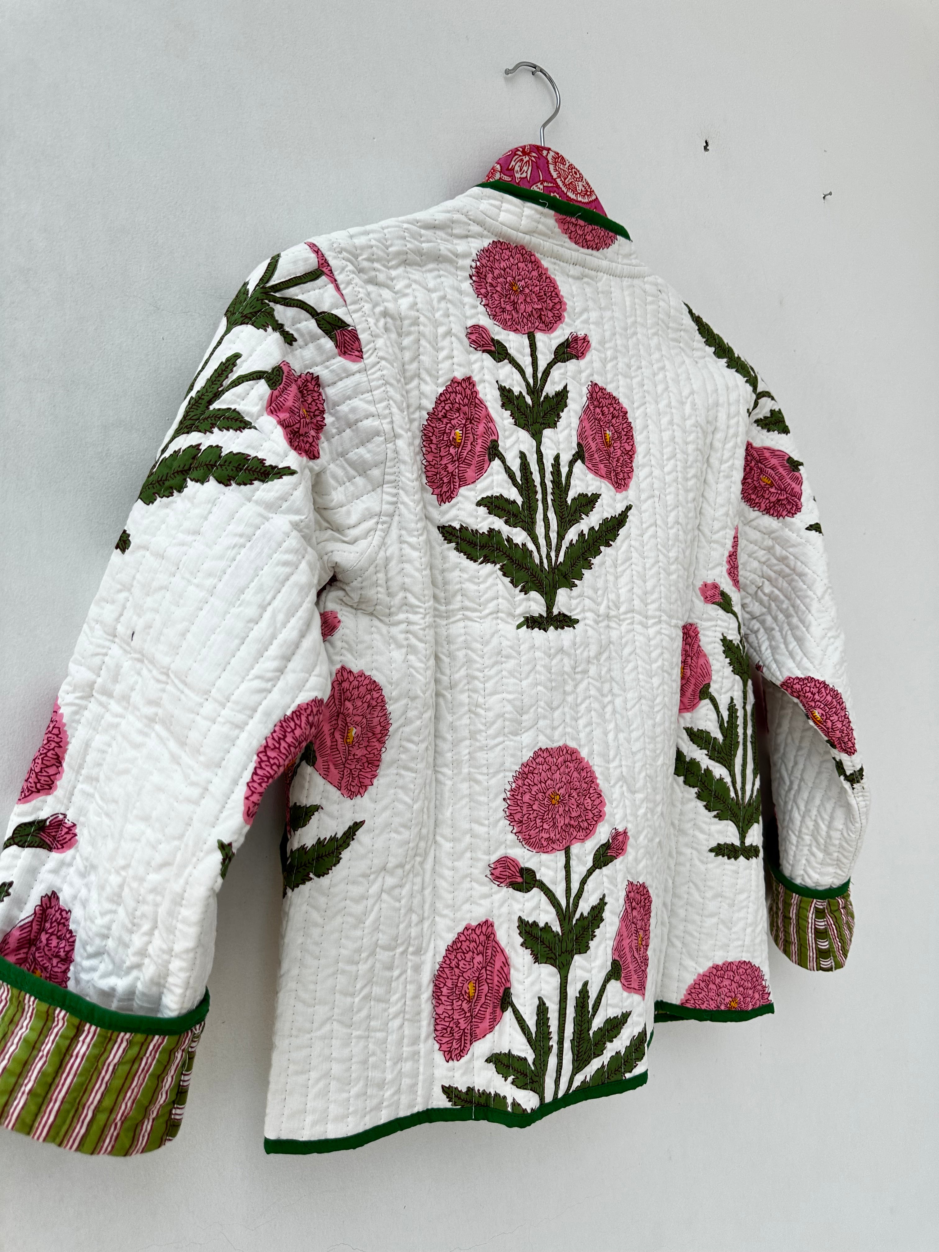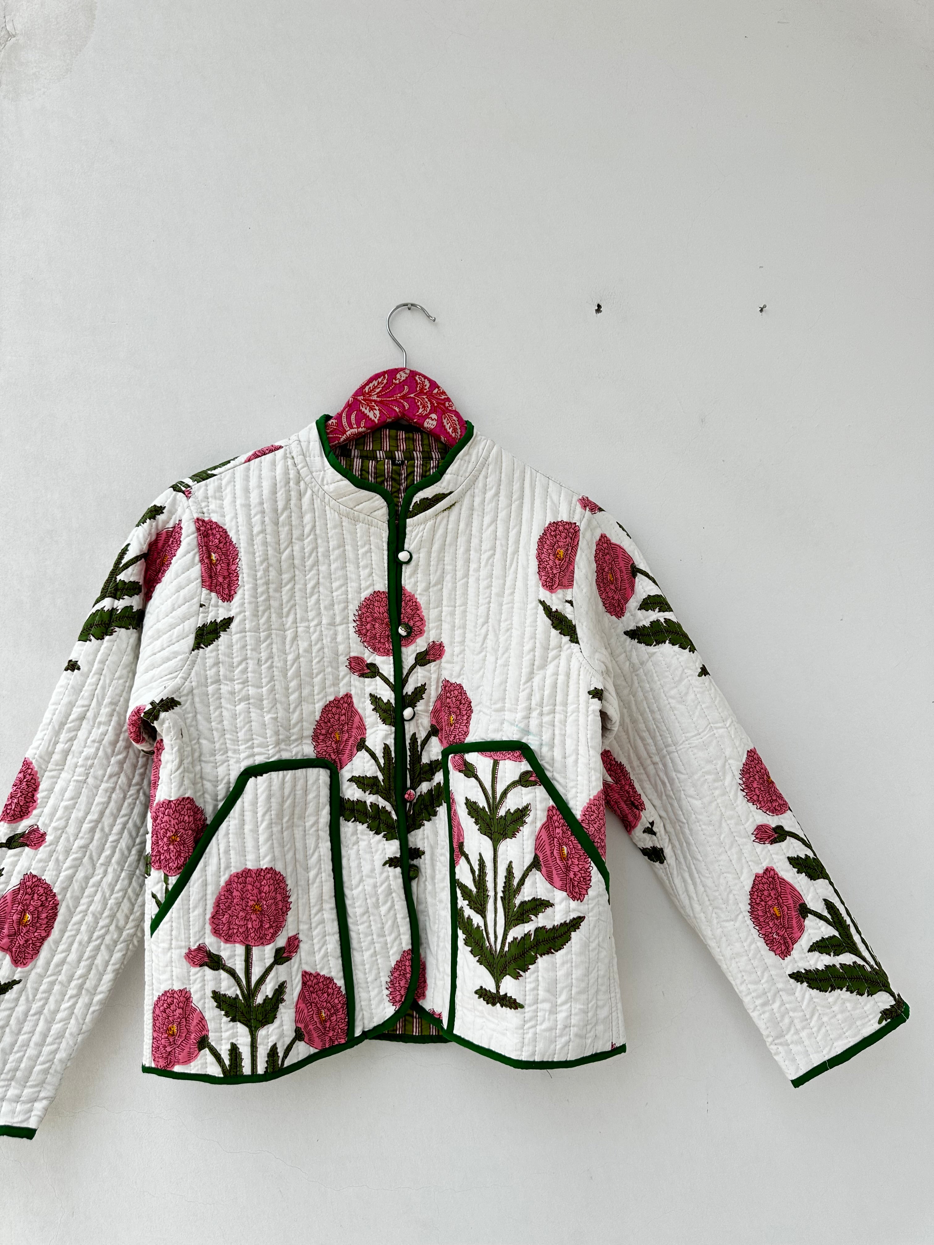 A white cotton printed jacket for women is a versatile, stylish wardrobe piece, especially suitable for spring and summer.